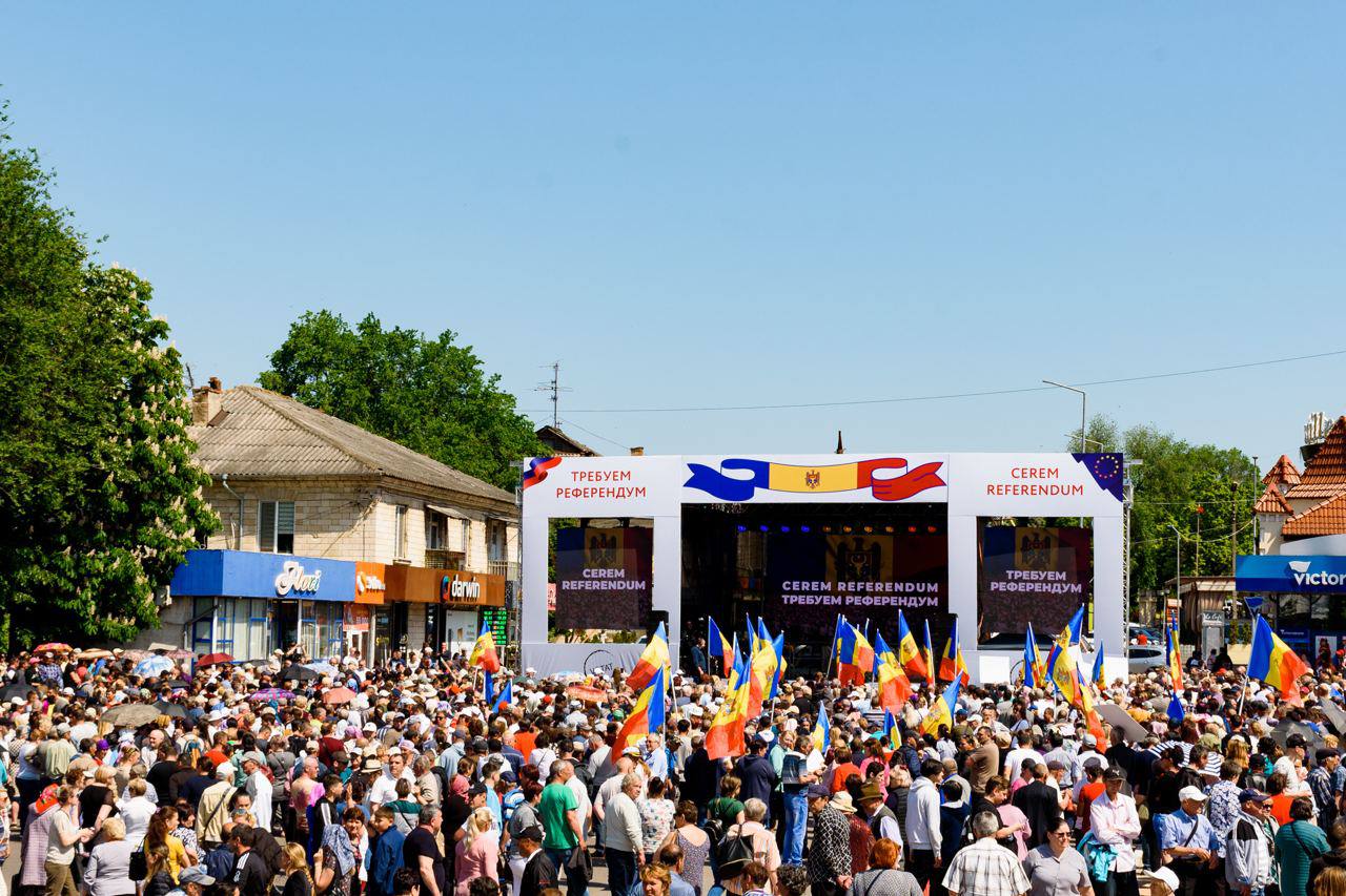 60 de mii de oameni au cerut astăzi într-un glas organizarea unui referendum privind vectorul extern al Republicii Moldova. Doleanța a fost exprimată în cadrul a trei mitinguri de amploare, care au avut loc concomitent, în trei orașe din țară – Orhei, Bălți și Comrat.