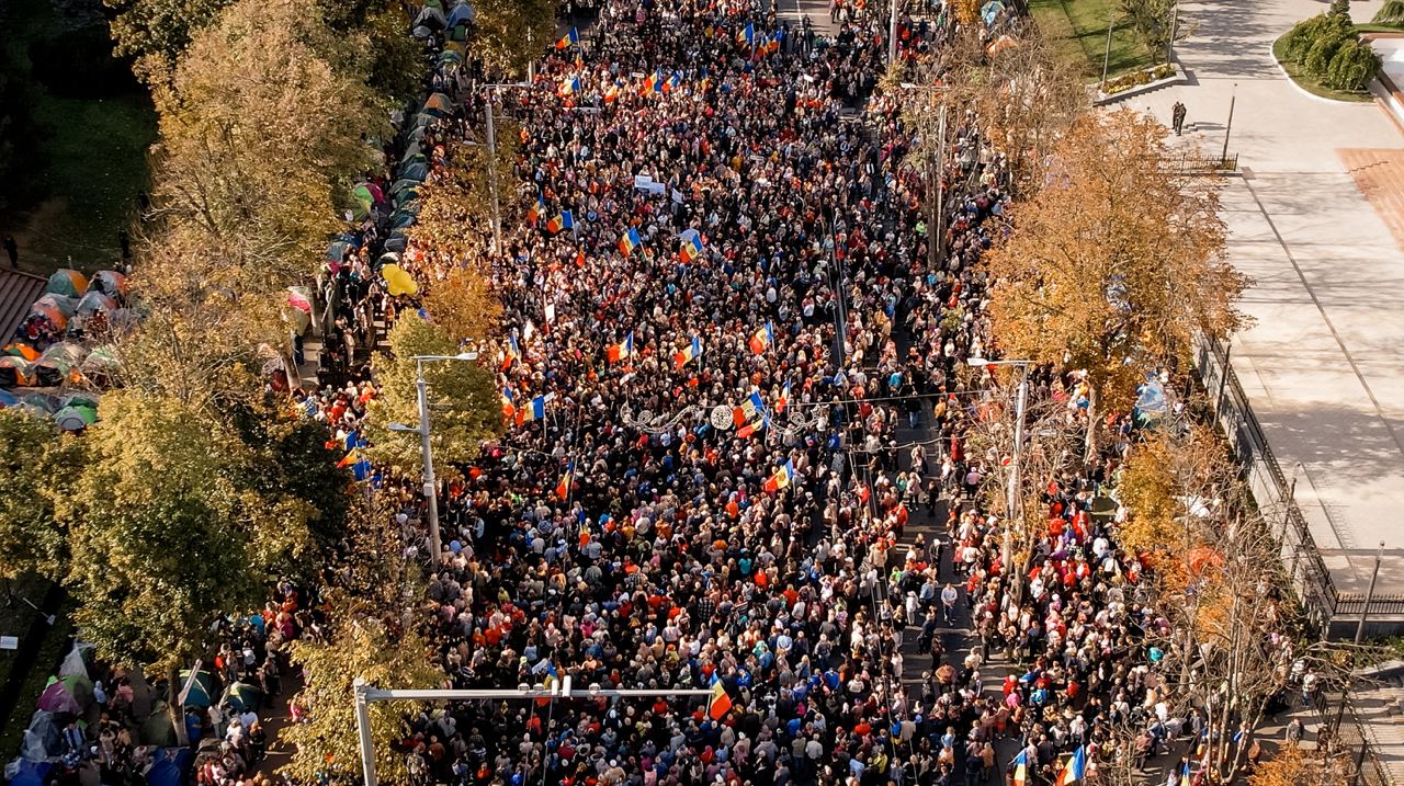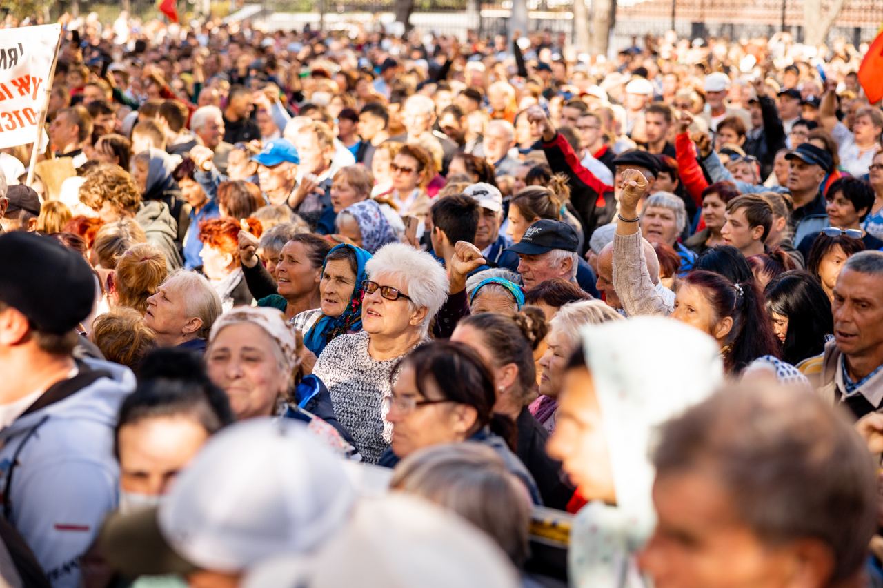 A patra duminică de proteste antiguvernamentale, în fața Președinției. Numărul participanților la manifestații crește în fiecare săptămână. La protestul de astăzi, au participat 60 de mii de oameni, care au cerut din nou demisia guvernării PAS și a Maiei Sandu, precum și organizarea alegerilor parlamentare și prezidențiale anticipate.