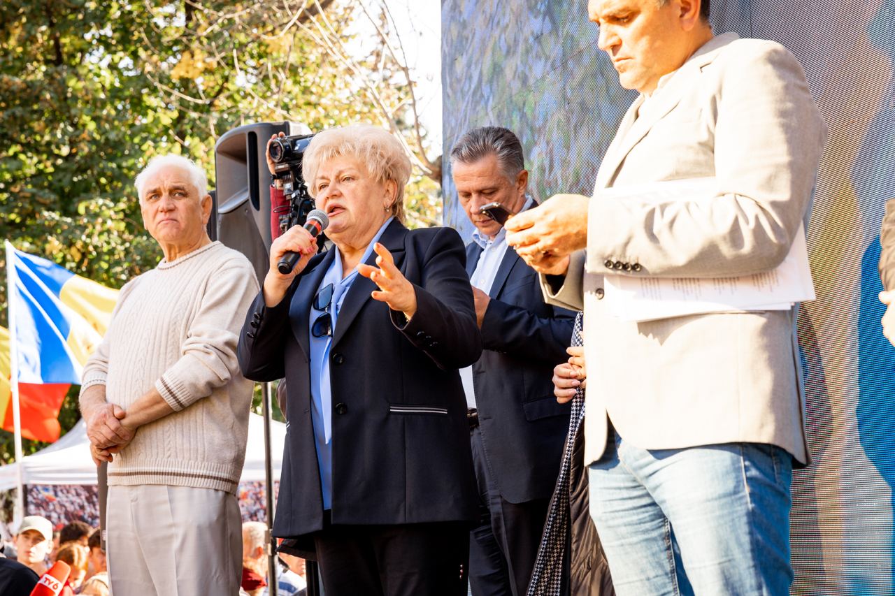 „Protestele nu sunt ale Partidului „ȘOR”, ci ale tuturor cetățenilor nedreptățiți de partidul de guvernământ – PAS, care își bate joc de oameni, i-a condamnat la sărăcie și foame. Pe lângă toate abuzurile pe care le fac la adresa oponenților politici, vor să închidă magazinele sociale, care sunt de mare ajutor pentru oameni, mai ales pe timp de criză. În prezent, pâinea în aceste magazine costă un leu, cel mai mic preț posibil de pe piață. Această guvernare trebuie să plece. Demisia!”, a declarat Reghina Apostolova.