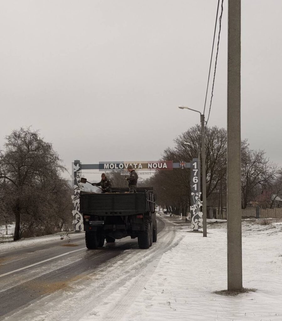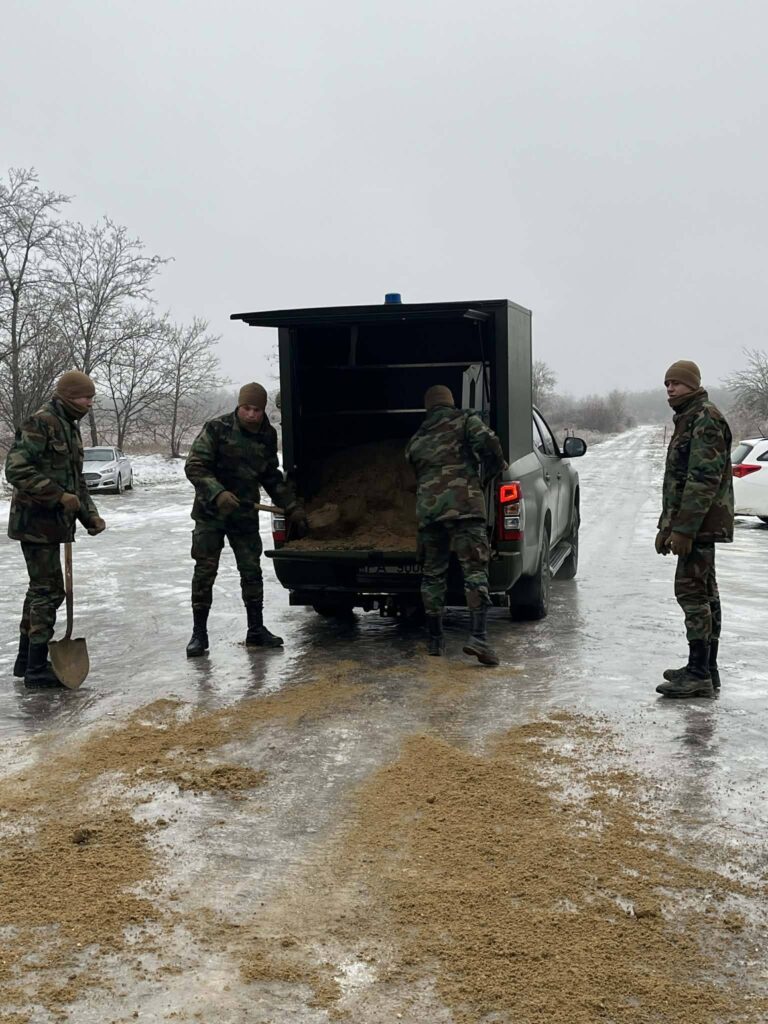 Echipele de militari s-au deplasat cu tehnică specială, nisip și material antiderapant. Aceștia sunt implicați direct în deblocarea căilor de acces, tractarea autovehiculelor rămase blocate și presărarea materialului antiderapant pe sectoarele de drum cele mai periculoase.