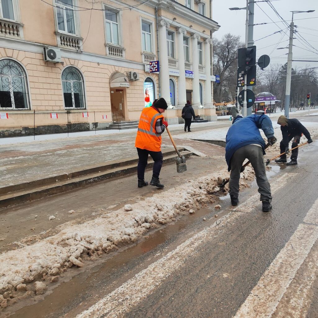 Primăria municipiului Chișinău anunță că echipele de intervenție acționează în toate sectoarele Capitalei, intervenind pe străzi și trotuare, în pasaje subterane, stațiile de transport public, precum și la accesele în curțile blocurilor.