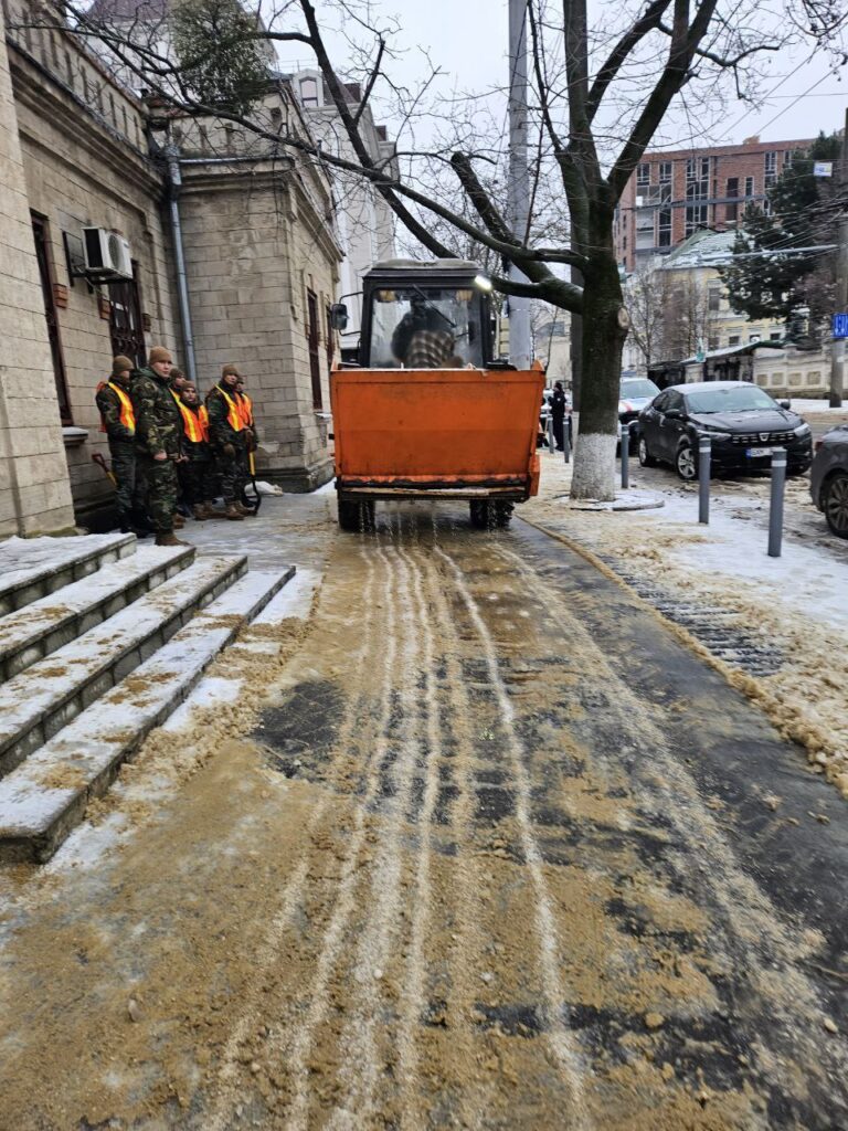 Serviciile municipale din Chișinău sunt mobilizate pentru a preveni formarea ghețușului și a combate poleiul, în contextul Codului Galben emis de meteorologi, valabil până pe 9 februarie.