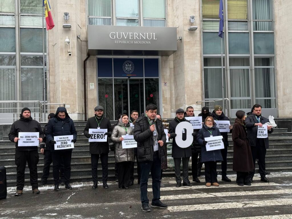 Partidul Mișcarea Alternativa Națională a organizat un flashmob în fața sediului Guvernului, marcând 100 de zile de la instalarea cabinetului condus de Alexandru Munteanu. Acțiunea s-a desfășurat sub lozinca „Guvernul ZERO”, criticând lipsa rezultatelor concrete și ceea ce participanții numesc incompetența Executivului.
