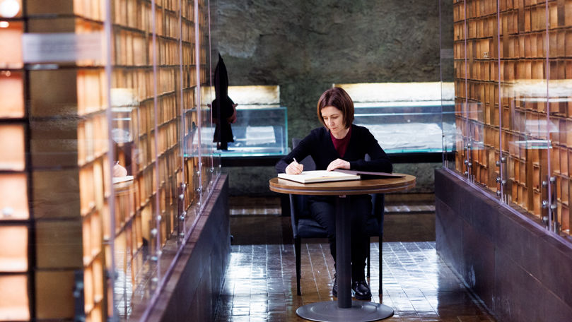Înainte de a începe vizita oficială în Polonia, președinta Maia Sandu a vizitat Muzeul masacrului de la Katyn din Varșovia.