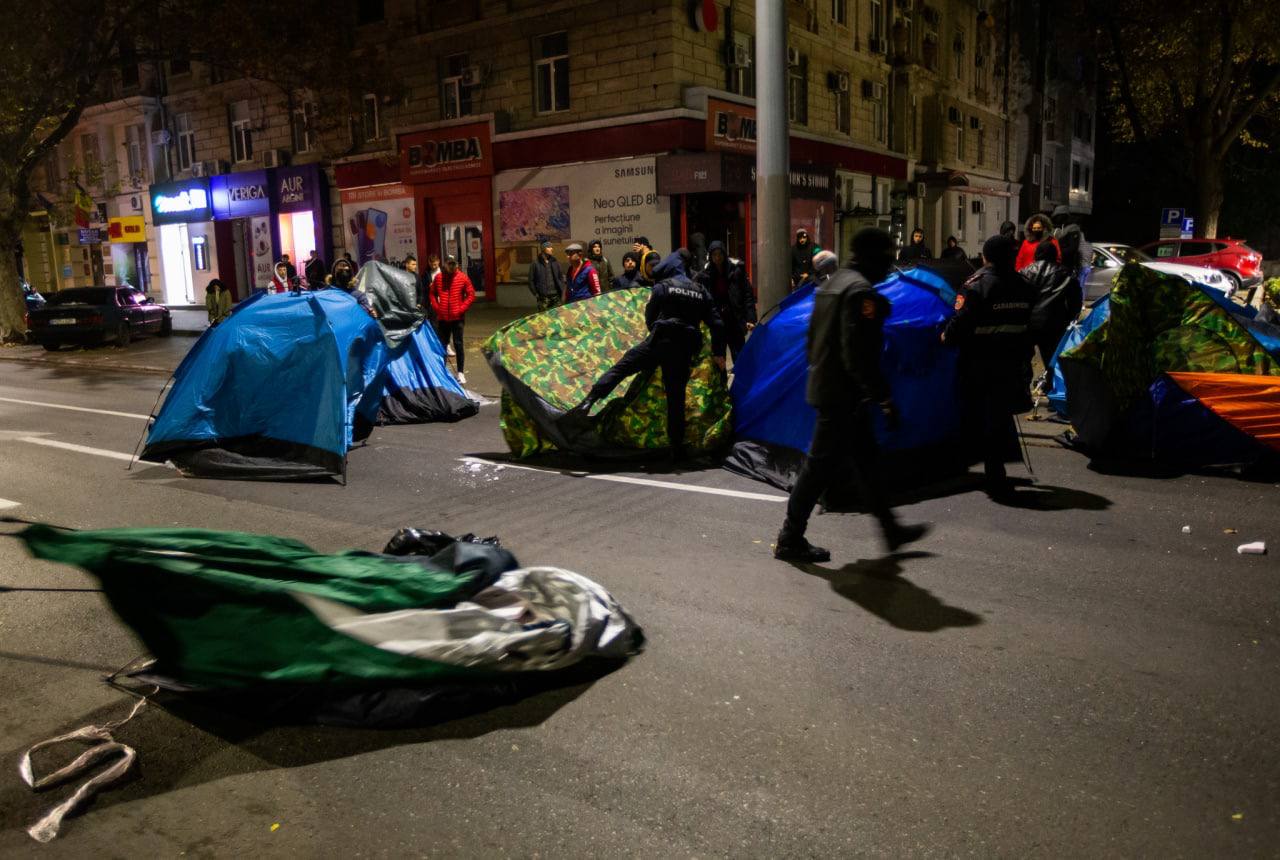 Un nou abuz nocturn din partea poliției Maiei Sandu. La primele ore ale dimineții, când afară era încă întuneric, forțele de ordine au descins în număr mare și au distrus violent orășelul de corturi din fața Procuraturii Generale. Patru dintre protestatari au fost reținuți. La fel ca și data trecută, acțiunea s-a produs, fără a exista un fundament legal și fără un avertisment prealabil.