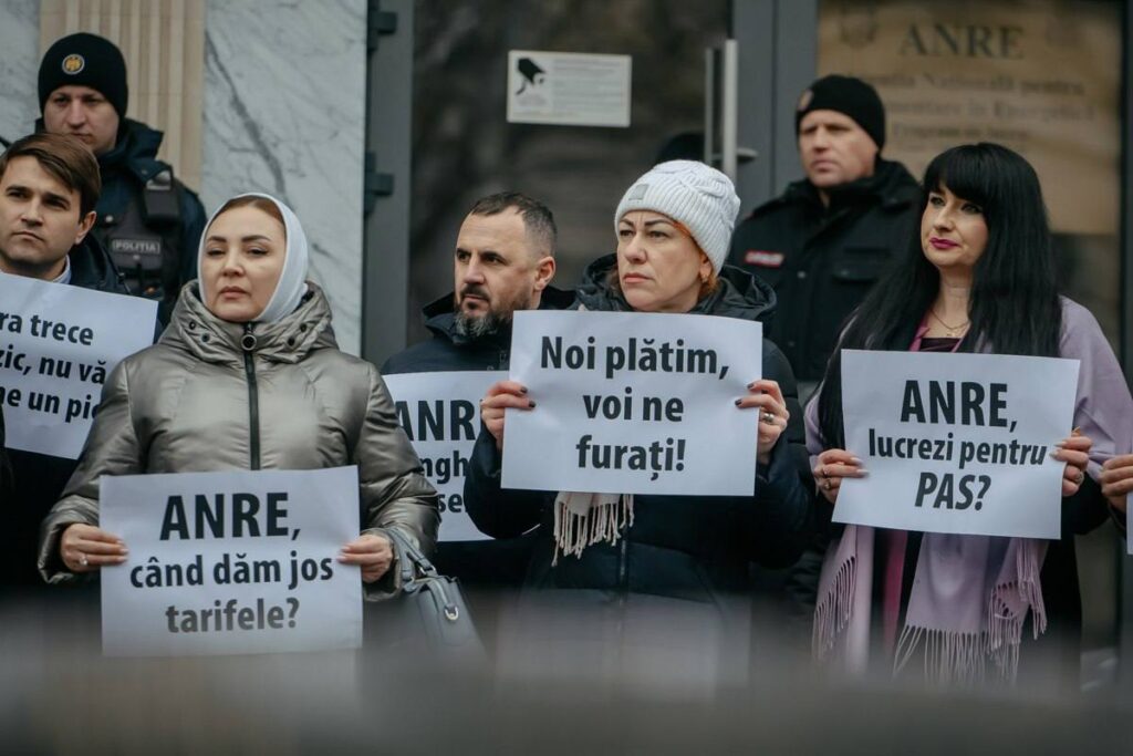 Partidul Mișcarea Alternativă Națională (MAN) a organizat astăzi un protest în fața Agenției Naționale pentru Reglementare Energetică (ANRE), solicitând ajustarea imediată a tarifelor la energie și protejarea dreptului cetățenilor la un trai decent. Membrii MAN au afișat pancarte similare celor folosite de actuala guvernare în perioada în care se afla în opoziție.