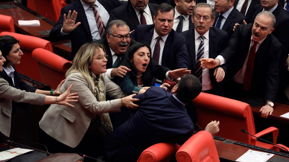 Potrivit presei turce, conflictul a izbucnit după ce vicepreședintele grupului parlamentar CHP, Murat Emir, s-a apropiat de deputatul AK Party de Bursa, Mustafa Varank. Schimbul de replici dintre cei doi a escaladat rapid, fiind implicați și alți parlamentari din ambele formațiuni, iar situația a degenerat într-o încăierare în sala de plen, relatează EN.Haberler.com.